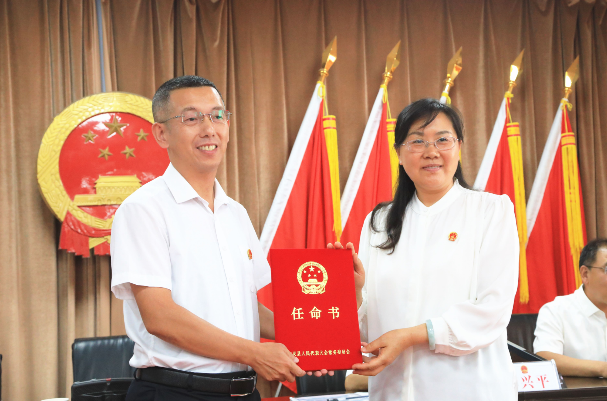 全體會議表決通過了關(guān)于接受辭職的決定和人事任免事項。依據(jù)票決結(jié)果,任命趙云平為廣靈縣監(jiān)察委員會副主任。劉玉清為新任職人員頒發(fā)了任命書,新任職人員進行了莊嚴的憲法宣誓。