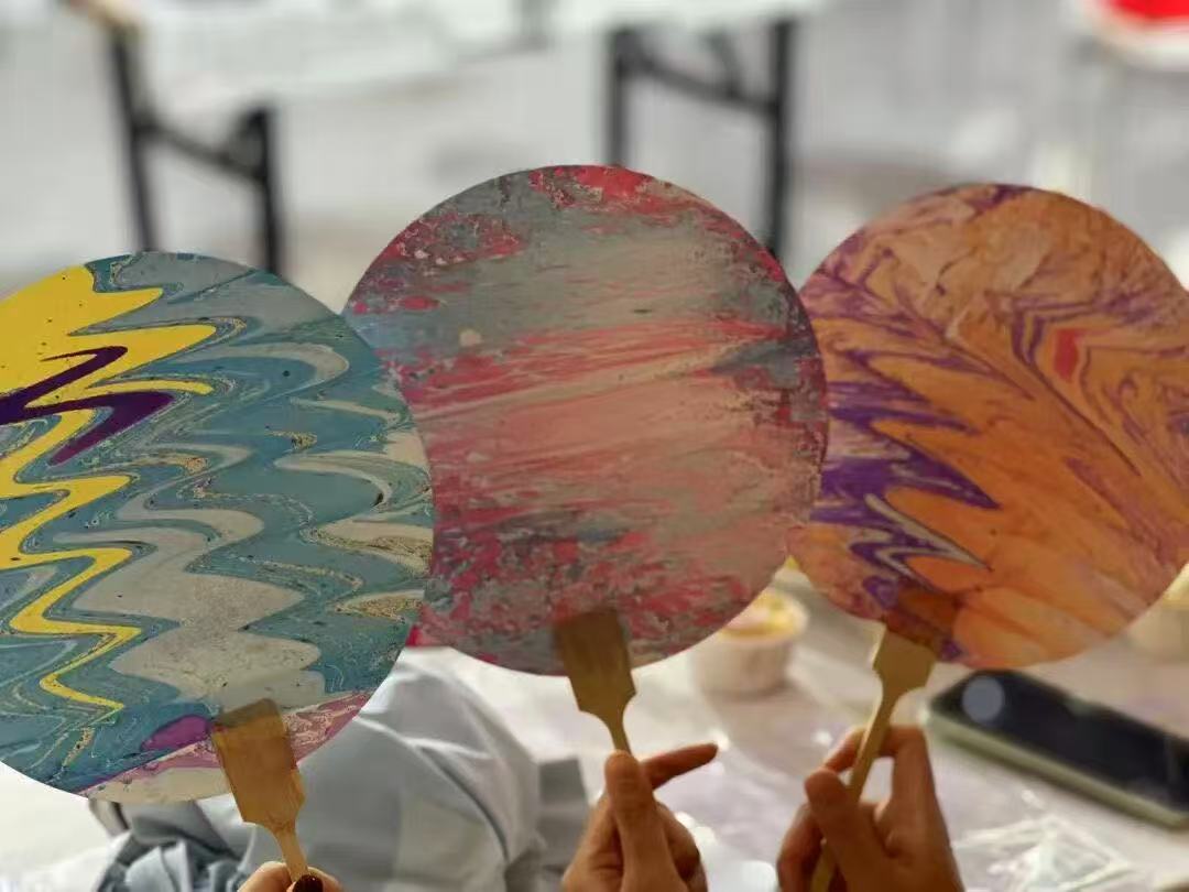 在溫情的“自制漆扇”環(huán)節(jié)。嘉賓們專注于手中的扇子與漆料,在扇面上勾勒創(chuàng)意、暈染色彩,于沉浸式創(chuàng)作中延續(xù)交流的暖意。