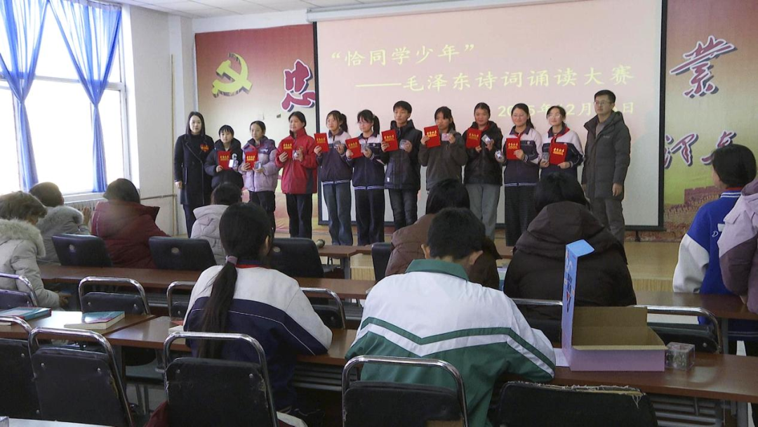 恰同學(xué)少年 誦紅色經(jīng)典:縣婦聯(lián)聯(lián)合斗泉九年制學(xué)校舉辦毛澤東詩詞朗誦大賽