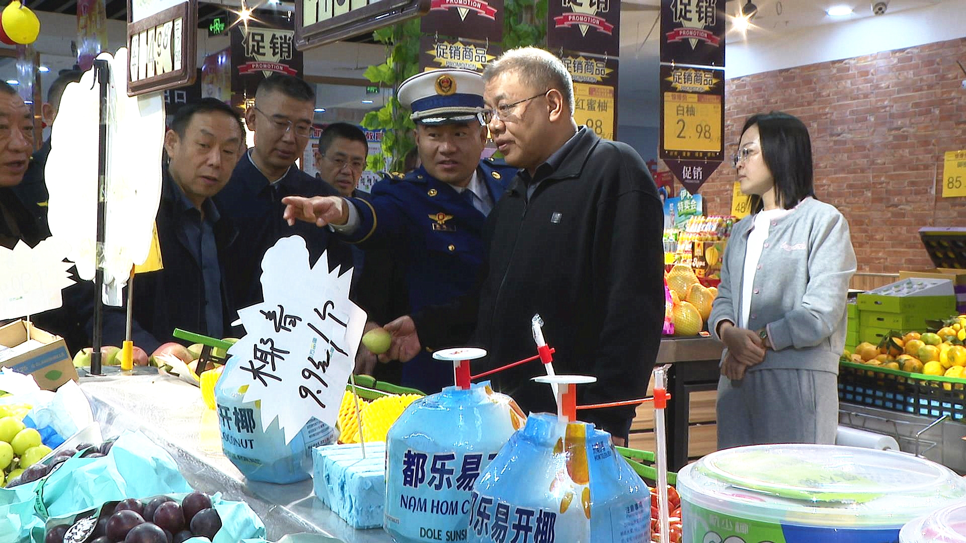 在萬品隆超市,梁軍細致詢問生活必需品的貨源儲備、銷售價格和消防安全等情況。他要求,要細致做好節(jié)假日期間物資供應(yīng)、保障工作,嚴格把控產(chǎn)品質(zhì)量和食品安全,保持價格穩(wěn)定,高水平做好市場供應(yīng)和服務(wù)工作。
